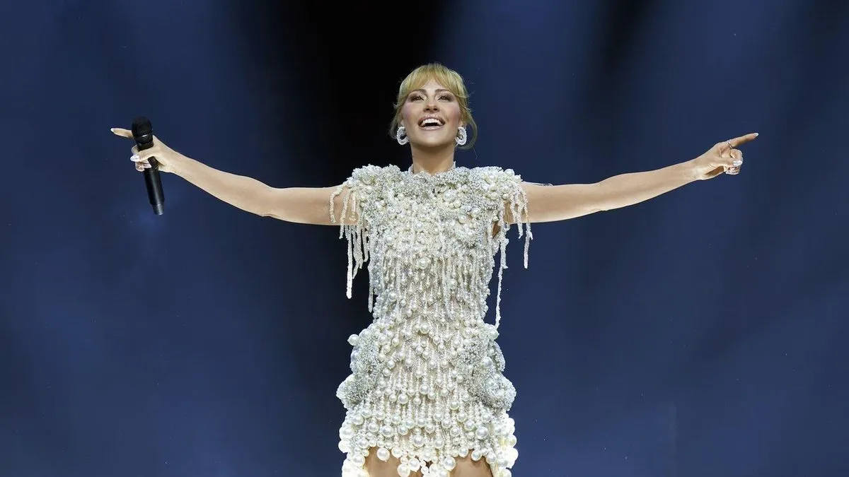 Perdelerin açılmasıyla havada beliren güzel şarkıcı, gece için hazırlanan özel düzenekle sahneye indi. Ünlü şarkıcıyı bu özel gecede yakın arkadaşları Mesut Özil ve Amine Gülşe de yalnız bırakmadı.