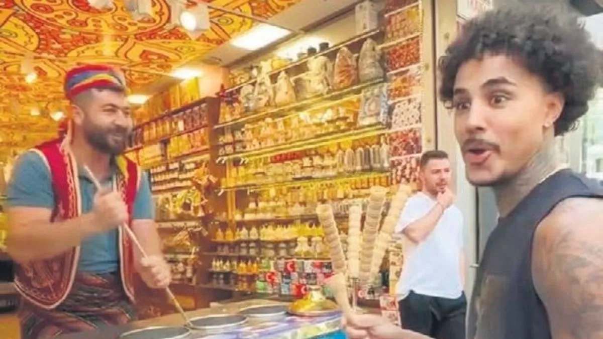Galatasaray'ın şampiyonluk kutlamaları için İstanbul'da olan Brezilyalı ünlü müzisyen MC Livinho, önceki gün şehri gezdi. GS taraftarının yeni favorisi Pode Sentar şarkısının sahibi olan ünlü yıldız, dondurmacıyla eğlenceli anlar yaşadı. Bir türlü dondurmayı alamayan müzisyen, gülme krizine girdi.