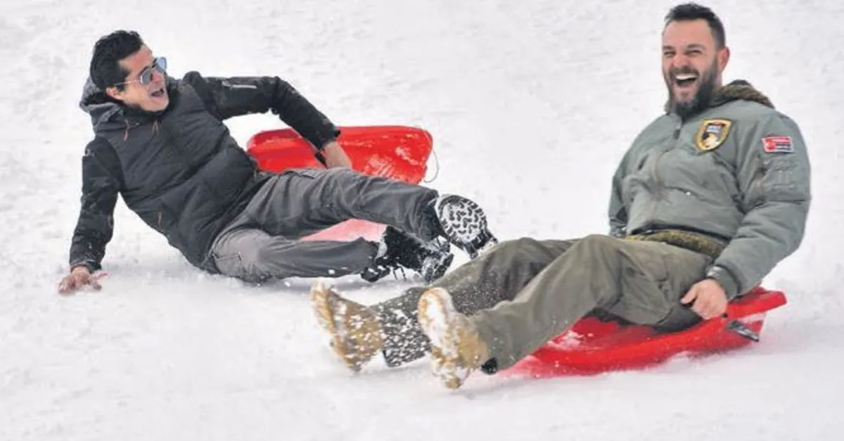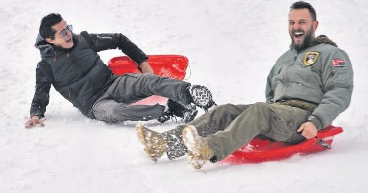 ÜNLÜ oyuncular İsmail Hacıoğlu ve Ogün Kaptanoğlu, Uludağ'da gerçekleştirilen Yapı Kredi Play Whitefest'e katıldı. Festivalin kapanış gününde birlikte kar kızağı yapan ikili, eğlenceli anlar yaşadı. Kayak pistinde kızaklarla yarış yaparak stres atan ikiliden Hacıoğlu, düşe kalka yarışı ikinci tamamlayarak pist başına kendisinden erken ulaşan Kaptanoğlu'na mağlup oldu.