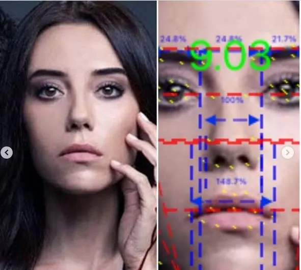 Türkiye'deki ünlü kadınların yüzleri, binlerce yıldır mükemmel güzelliğin gizli formülü olduğu düşünülen altın orana göre hesaplandı. 'call_me_mumsy' adlı Instagram kullanıcısı, sonuçları sosyal medyada paylaştı.