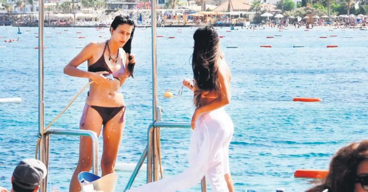 Oyuncu Tuğba Melis Türk, Ganj Türkbükü'ndeydi. Gün boyu sahilde oturan oyuncu akşam saatlerinde denize girdi. Türk, gazetecileri fark edince denizden çıkmakta önce tereddüt etti, sonra hızlıca çıkıp duş aldı.