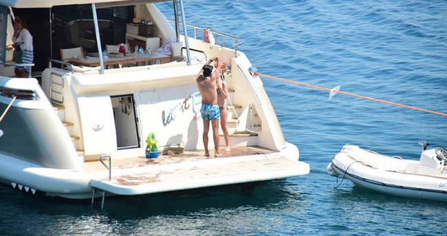 Önceki gün Türkbükü Bodrum Mantı açıklarına demirli teknede kahvaltı yapan sevgililer, öğlene doğru denize girdi.