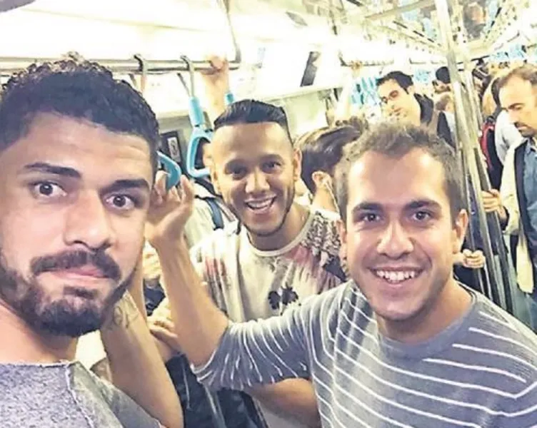 Josef de Souza, takım arkadaşı Fabiano (solda) ile Marmaray'da seyahat ederken...