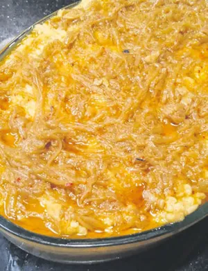 Mercimek ve pirinci kaynatıyoruz. Soğanları doğrayıp karamelize ediyoruz. Yumuşayınca içine yaptığımız karamelize soğandan bir miktar koyuyoruz. Sarımsak, pul biber, tuz ve kimyon ilave edip püre kıvamına getiriyoruz. Sonra tekrar karamelize soğan ekleyip sunuyoruz.