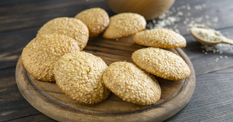 YAPILIŞI: Yumurta akı dışındaki tüm malzemeleri bir kaba koyup, şekil verecek kıvama gelinceye kadar yoğuruyoruz. Daha sonra hamurdan parçalar koparıp şekillendiriyoruz. Üste gelecek kısmını, önce ayırdığımız yumurta akına, sonra ise bir tabağa koyduğumuz susama batırıyoruz ve tepsiye diziyoruz. 160 derecede önceden ısıtılmış fırında üzeri kızarana kadar pişiriyoruz.