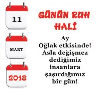 Kendi dengesini kuranlara güzel fırsatlar sunan gökyüzü, akıl karışıklığı yaşayanların düşüncelerinin netleşmesine yardımcı olacak. Eli maşalı Mart her gün yeni bir film çevirirken, oluşumların ve güzel gelişmelerin de habercisi... Ama tabi ki bunu güzel güzel anlatarak yapmayacak.