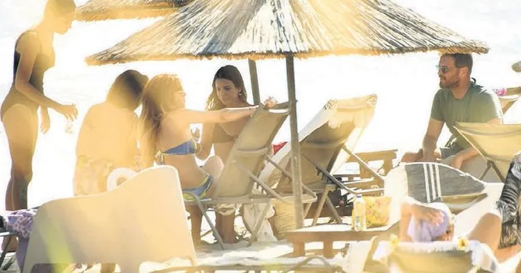 Nur Fettahoğlu ile karşılaştı. Mekana kızı Elisa Güzin Veziroğlu ile birlikte giden ve gün boyu şezlongta oturup arkadaşlarıyla sohbet eden oyuncu, bir ara muhabbete Engin Öztürk ile devam etti. Gölgede keyif yapan iki ünlü oyuncu, uzun uzun konuşup özlem giderdi.
