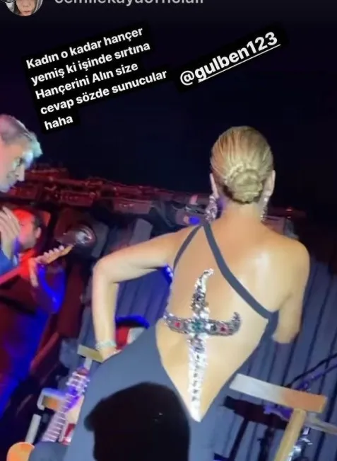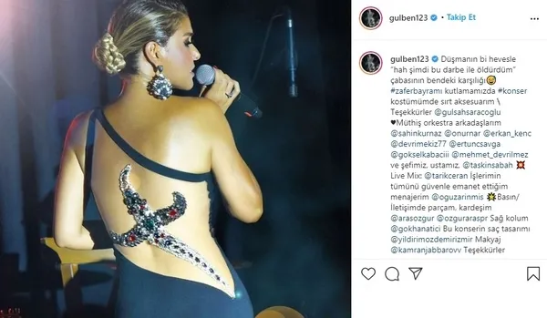 Konser sırasında kostümü ile ilgili açıklama da yapan Gülben Ergen, "Sırtımdan hançerleyenlere gelsin" diyerek imalı bir açıklamada bulundu.