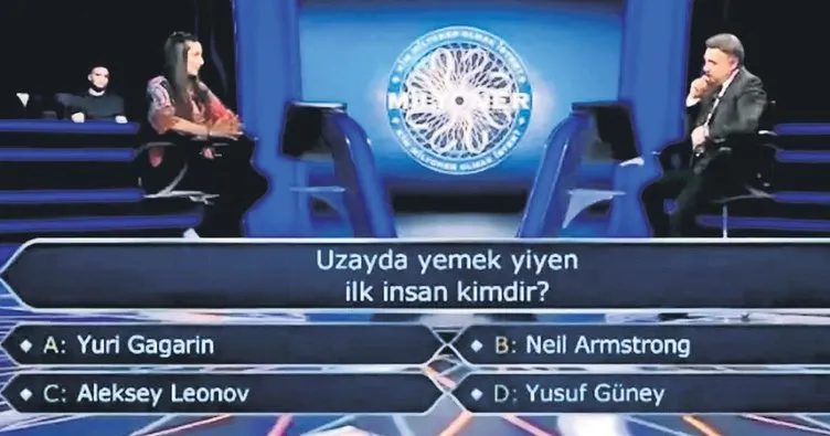 yayınlanan Kim Milyoner Olmak İster? yarışmasında yöneltilen 'Uzayda yemek yiyen ilk insan kimdir?' sorusu, sosyal medyada büyük ilgi gördü. Şıklar arasında şarkıcı Yusuf Güney'in yer alması, espri konusu oldu. Yarışmacı, Yuri Gagarin cevabını vererek 100 bin lira değerindeki soruya geçmeyi başardı. Yusuf Güney ise kendisinin şıklar arasında yer aldığına inanamadı ve "Bu gerçek değil değil mi söyleyin dostlar" diyerek esprili bir paylaşım yaptı.