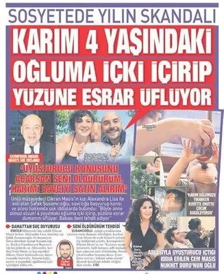 Ünlü müzayedeci Dikran Masis'in damadının "Karım 4 yaşındaki oğluma içki içirip yüzüne esrar üflüyor" sözlerini GÜNAYDIN manşet yaptı. Türkiye günlerce Masis Ailesi'ni ve mağdur torunu konuştu.