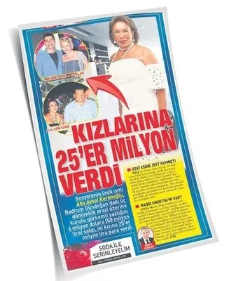 Sosyetenin ünlü ismi Ahu Aysal, Bodrum'daki üç dönümlük arazi üzerindeki yazlığını 50 milyon liraya satıp iki kızına 25'er milyon lira verdi. Bu mal paylaşımını herkes konuştu.