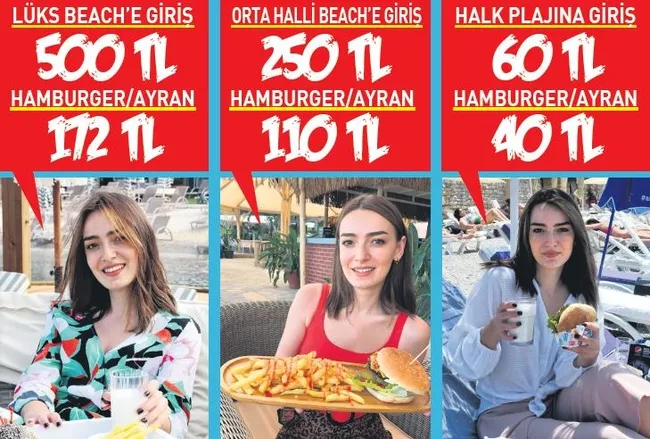 ERTESİ gün Bitez'de daha orta segmentteki Beyaz Beach'te soluğu aldım. Buraya giriş ücreti 250 TL. Beyaz Beach, adı gibi beyaz rengin hakimiyetinde bir yer. Burada hamburger 85 TL, ayran ise 25 liraydı.