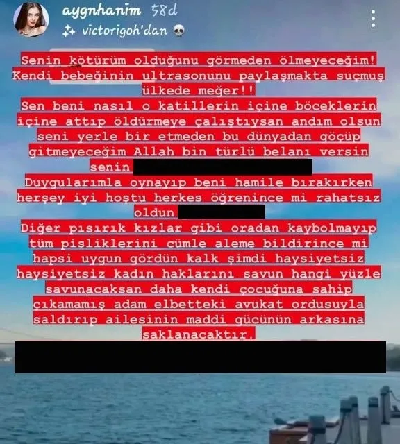 Sabancı'nın duygularıyla oynadığını iddia eden Aydın, "Duygularımla oynayıp beni hamile bırakırken her şey iyi hoştu. Herkes öğrenince mi rahatsız oldun? Diğer pısırık kızlar gibi oradan kaybolmayıp tüm pisliklerini cümle aleme bildirince mi hapsi uygun gördün. Kalk şimdi haysiyetsiz haysiyetsiz kadın haklarını savun. Hangi yüzle savunacaksan... Daha kendi çocuğuna sahip çıkamamış adam elbette ki avukat ordusuyla saldırıp ailesinin maddi gücünün arkasına saklanacaktır" demişti.