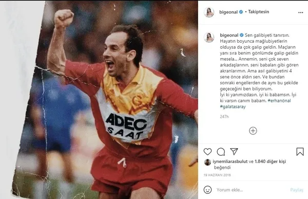Öte yandan Erhan Önal'ın kızı olan Bige Önal'ın 2016 yılında sosyal medya hesabından yaptığı bir paylaşım görenleri duygulandırdı. Önal, yaptığı bir paylaşımda "İyi ki varsın, iyi yanımızdasın. İyi ki babamsın." ifadelerini kullanmış.