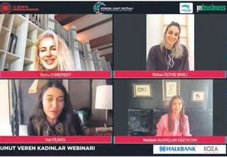 UMUT VEREN KADINLAR'PES ETMEYİN' DEDİ Turkuvaz Medya Grubu ve InBusiness Dergisi tarafından sürdürülebilirlik konusunda farkındalık oluşturma misyonuyla hayata geçirilen Küresel Umut Festivali- Sürdürülebilir Hikayeler Webinar Serisi'nin ilki gerçekleşti. Halkbank ve Koza Altın İşletmeleri sponsorluğunda, 'Umut Veren Kadınlar' başlığında yapılan webinar, Toplumsal Cinsiyet Eşitliği'ne dikkat çekti. Webinar'da Şamdan Plus da oturum gerçekleştirdi. Burcu Esmersoy'un moderatörlüğünü yaptığı webinar'a, modacı Aslı Filinta, girişimci kimliğiyle Neslişah Alkoçlar Düzyatan ve artistik jimnastikte Avrupa ikincisi olan Göksu Üçtaş Şanlı katıldı. Webinar'da; Filinta, kadının önce kendini keşfetmesi gerektiğini belirterek nasıl başarılı olduğunu anlattı. Düzyatan ise kadın girişimci olarak zorlandığını ama pes etmediğini söyledi. Umut verici bir webinar'dı, Inbusiness Youtube kanalından izleyebilirsiniz.