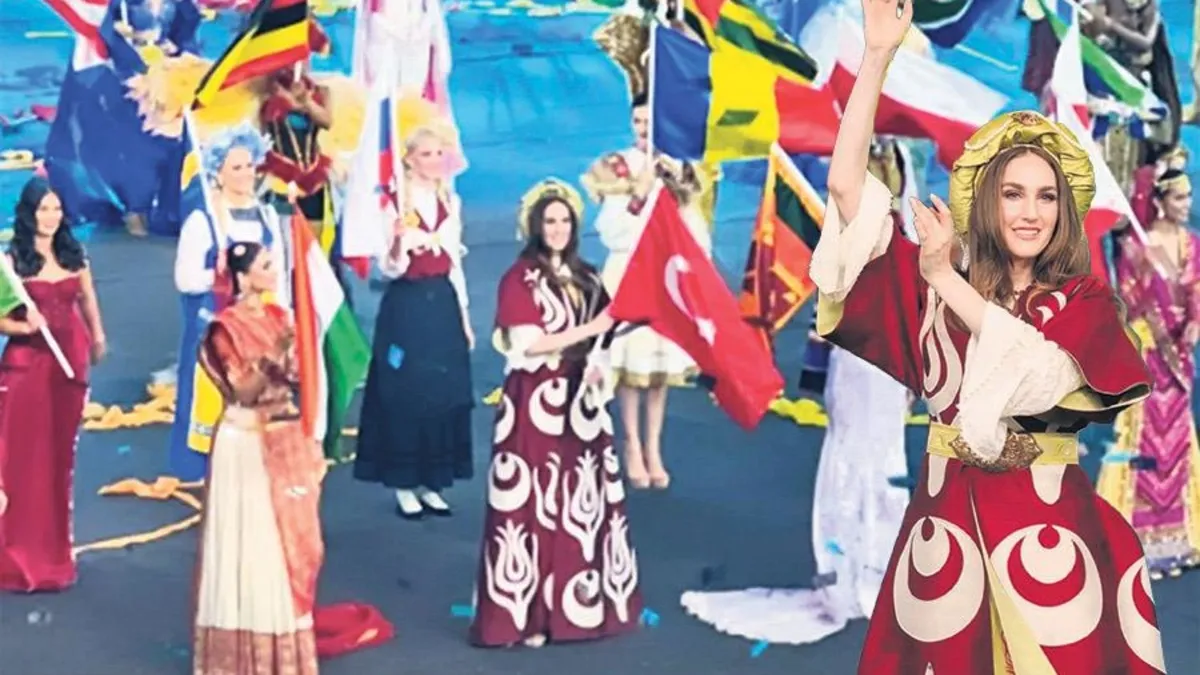 MISS Turkey 2024 güzellik yarışmasının birincisi İdil Bilgen, Miss World yarışması için Hindistan'da! Bilgen, yarışma öncesi düzenlenen törene üzerinde bayrağımızı simgeleyen ay-yıldız motifli bir kıyafetle katıldı.