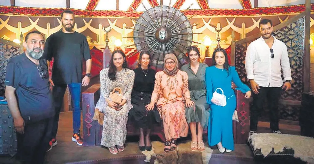 Platoyu gezen kraliçe, "Her bölümle tarih dersi veriyorsunuz. Dizinizi büyük bir sabırsızlıkla bekliyorum, hiçbir bölümü kaçırmıyorum" dedi. Kayı Obası'nda demirci atölyesini gezen kraliçeye, diziye ait kostüm, hançer, Türkmen başlığı ve el yapımı özel tasarım ürünler hediye edildi.