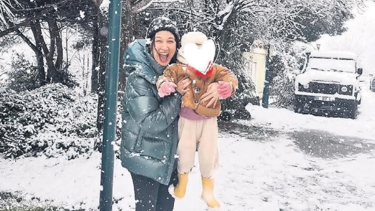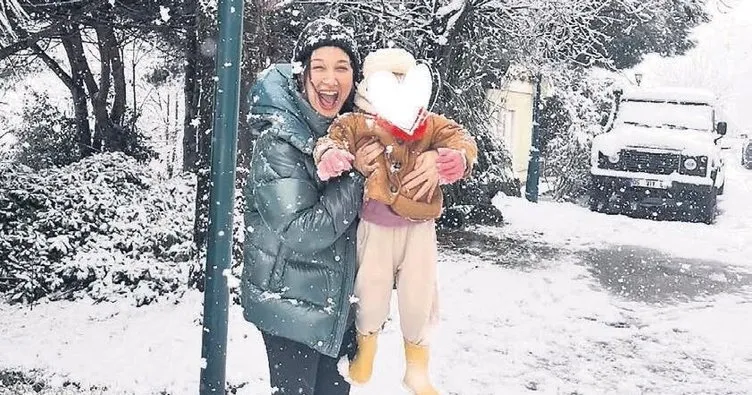 Oyuncu Gupse Özay, 2 yaşındaki kızı Nisan Asya ile kar yağışını görür görmez soluğu dışarıda aldı. Doyasıya eğlenen anne-kız, araçların üzerindeki karları toplayıp keyifli anlar yaşadı.