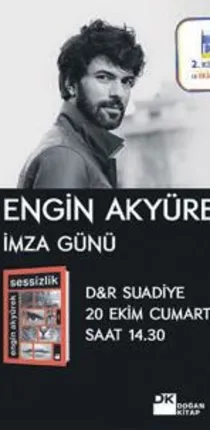 İLK öykü kitabı 'Sessizlik'i çıkaran Engin Akyürek, yazarlık yönüyle de sevenlerinin karşısına çıktı. Kitapta, çocukluğundan ilk aşkına kadar oyuncunun hayatından izler taşıyan 21 öykü var. Kitabından elde edeceği tüm geliri Darüşşafaka'ya bağışlayacak olan Akyürek, 20 Ekim'de D&R Suadiye'de bir imza günü düzenleyecek.
