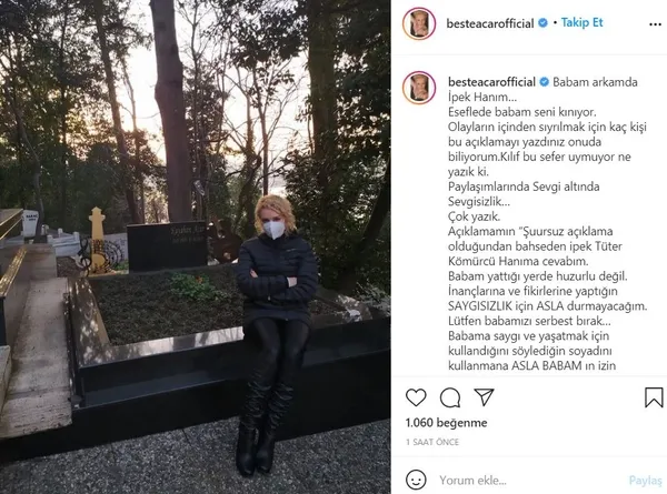 Aralarındaki sular durulmayan ikilinin kavgası büyürken son açıklama yine Beste Açar'dan geldi. Beste Açar babasının mezarı başında çekilmiş karesi ile paylaşımda şunları söyledi: