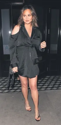 İkinci çocuğuna hamile olan model ve sunucu Chrissy Teigen, geçtiğimiz günlerde Los Angeles'taki Craig's'ten çıkarken görüntülendi. Pijamayı andıran bir elbise giyen 32 yaşındaki yıldızın karnının iyice belirginleştiği görüldü. Hamileliği sırasında 18 kilo aldığını söyleyen Teigen, "Bunun bir kilosu bile kalçalarıma gitmedi" dedi. Twitter'da vücuduyla ilgili yapılan yorumlara yanıt veren ünlü model, "Bu kalçasız kadını eleştirmeyi bırakın; görüyorsunuz deniyorum" diye espri yaptı.