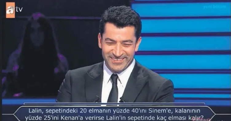 yayınlanan Kim Milyoner Olmak İster?'de yöneltilen soru, sunucu Kenan İmirzalıoğlu'nu güldürdü. Matematik sorusunda İmirzalıoğlu'nun, eşi Sinem (Kobal) ve kızları Lalin'in de isimleri yer aldı.
