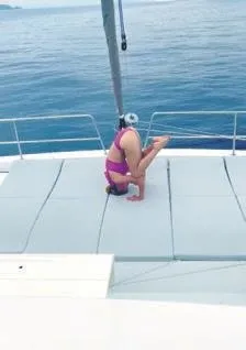 İtalya'da tatil yapan Etel Baler, tekne ile Capri Adası'na giderken pilates yapmaya başladı.