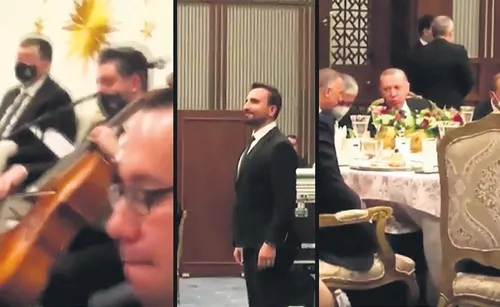 Cumhurbaşkanı Recep Tayyip Erdoğan'ın Irak Başbakanı Mustafa el-Kazımi onuruna verdiği yemekte davetlilerden birinin cep telefonuyla çektiği görüntüler sosyal medyaya düştü.