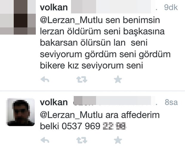 "Volkan Özen" adına açılan hesaptan ölüm tehditleri alan Mutlu, çareyi kullanıcıyı engellemekte buldu. Ancak bu da çözüm olmadı. Kullanıcının farklı hesaplar açarak hem kendisini hem de menajeri Derya Özgören'i rahatsız etmeye devam etmesi üzerine Mutlu, savcılığa suç duyurusunda bulunma kararı aldı.