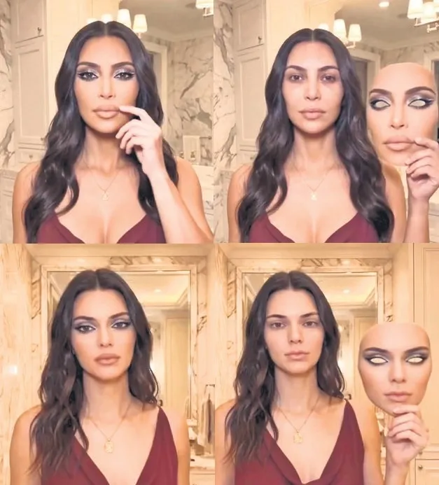 Kim Kardashian ve kardeşleri, sosyal medyada iddialı bir paylaşım yaptı. Tüm kardeşler önce makyajlı ardından da makyajsız hallerini gözler önüne serdi. Önce Kim Kardashian kamera karşısına geçti. Profesyonel makyajlı halini çekti. Ardından eliyle maskesini çıkarıp sıfır makyaj poz verdi. Aynı kıyafeti giyen Khloe Kardashian, Kourtney Kardashian, Kylie Jenner ve Kendall Jenner da doğal hallerini gösterdi.