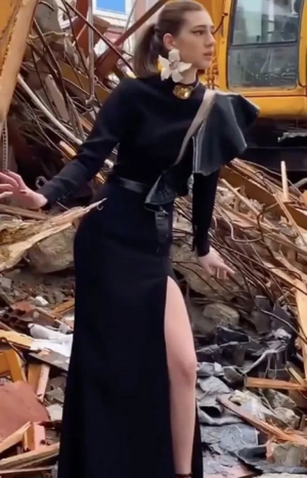Bir enkaz üzerinde şık elbisesiyle poz veren Esen, çekimden bir videoyu sosyal medya hesabında paylaştı. Eleştiri oklarının hedefi olan genç modelin gönderisine, "Böyle farkındalık olur mu?', 'Ne yaptığınızın farkında mısınız' gibi binlerce olumsuz yorum yapıldı.