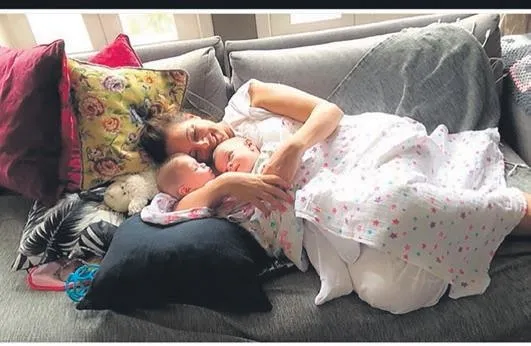 Ünlü oyuncu Doğa Rutkay 10 ay önce kucağına aldığı ikizleri Piraye ve Rutkay'la.