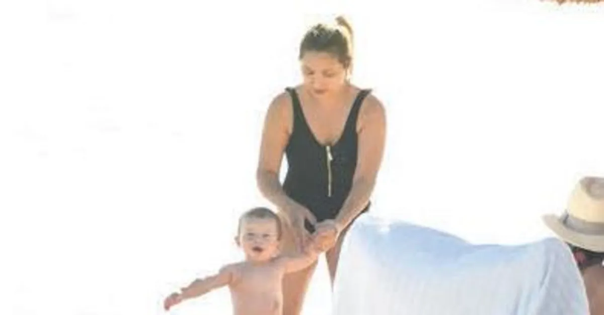 Bodrum tatiline devam ediyor. Her gün beach'te uzun süre geçiren aile, sudan çıkmıyor. Bir ara oğluna yüzme öğretmeye çalışan Nurdan Büyükak, minik Aslan'ın üşüdüğünü görünce derse hemen ara verdi.