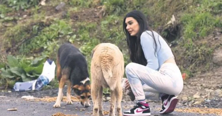 Orman yolunda köpekleri besledi