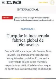 İspanya'da çıkan günlük gazete El Pais, Türk dizilerine övgüler yağdırdı. Gazetede Güney Afrika'dan Japonya'ya, Buenos Aires'ten Milano'ya Türk dizilerinin ekranları fethettiğinden söz edilerek "Ülke, dünyadaki en büyük dizi ihracatçılarından biri haline geldi. 10 yıldan kısa bir süre içerisinde Türkiye, pembe dizi alanının güç merkezi oldu. Dünyada 146 ülkeye yaklaşık 150 Türk dizisi satıldı ve dört kıtada 600 milyon insan tarafından izlendi" denildi. Ayrıca koronavirüs salgını sırasında evlerinden çıkmayan insanların da Türk dizilerine olan talebi artırdığından bahsedildi.