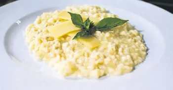 Tereyağını tavada eritiyoruz. Pirinci ilave edip üç-dört dakika kavurduktan sonra balsamik sirkeyi ekliyoruz. Bu şekilde beş dakika kadar pişiriyoruz. Ardından suyunu ilave edip pirinçler suyunu çekinceye dek pişmeye bırakıyoruz. Suyu çeken risottoya krema ekliyoruz. Ateşten almaya yakın peynirleri ilave edip karıştırıyoruz.