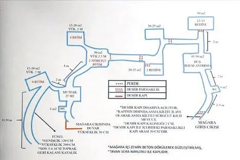 Harekatın en zor bölümü ise dere yatağı ve her iki yanında yüzde 60 meyilli olan ve Hava Kuvvetleri'nin görerek ateş etmesine mani olan bir alanda bulunan mağarada gerçekleşti. Askeri kaynakların verdiği bilgiye göre; mağarada üç giriş, dokuz oda ve yedi tane de demir kapı var. Sürekli zikzaklar çizilerek ilerlenebilen mağarada bazı noktalarda yükseklik 1.20 metreye kadar iniyor. Bu bölümlerde çömelerek ilerleyebiliyorsunuz. Ama konfor unutulmamış! Mağara içi zemini beton dökülerek düzleştirilmiş ve tavan plastikle kaplanmış.
