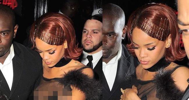 Tüm dikkatleri üzerine çeken Rihanna giydiği transparan kıyafetiyle zor anlar yaşadı.