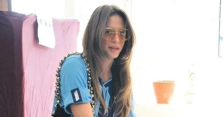 Serenay Sarıkaya, Bebek Tevfik Fikret İlkokulu'na oy kullanmaya Adana Demirspor formasıyla gitti.