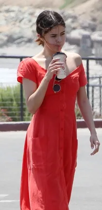 Yoğun bir temponun ardından tatile çıkan 24 yaşındaki şarkıcı makyajsız haliyle görenleri şaşkına uğrattı. Kırmızı bir elbise ve parmak arası terlikle yürüyüşe çıkmayı tercih eden Gomez makyaj yapmaktan da kaçındı. Saçlarını özensiz bir şekilde toplarken güneş gözlüğünü takmak yerine elbisesinin üzerine astı. Yanında bir kız arkadaşıyla birlikte yürüyüşüne devam ederken Gomez kahvesini yudumlamayı da ihmal etmedi.