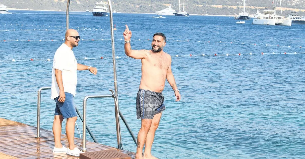 Ümit Karan, önceki gün Türkbükü'ndeki Ganj Beach'te görüntülendi. Sıcaktan bunalan Karan, "Hava çok sıcak, serinlememiz lazım" deyip iskeleden suya atladı.