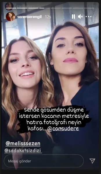 Cansu Dere ve Melis Sezen'in fotoğrafını alıntılayarak kendi Instagram hesabından paylaşan Seren Serengil'in yazdığı not ise olay oldu. Seren Serengil, "Bence gözümden düşme istersen. Kocanın metresiyle hatıra fotoğrafı neyin kafası" ifadelerini kullandı. Serengil paylaşımında Cansu Dere ve Melis Sezen'i de etiketledi.