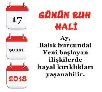 Bugün Mars-Neptün 90'lığı ruhsal konularda çalışan kişilerin skandal haberlerini gündeme getirebilir. Aynı zamanda madde bağımlılığı ve kara para ticareti de manşetlere düşebilir. Özellikle dolandırıcılık ve iyi niyeti kötüye kullanma gibi olayları sıkça duyacağımız bugün, kendimizi de bu tür olumsuzluklar karşısında korumalıyız. Tehlikeli bir gün!