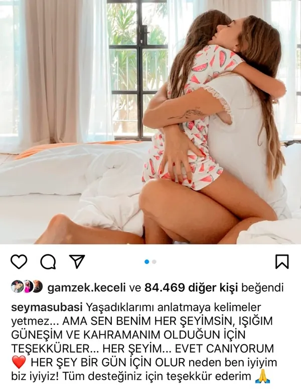 Yemekte Alsaloussi'nin yüzünü gizleyen Şeyma Subaşı, Instagram hesabından paylaştığı dans ettiği videoda ise tektaşını yeniden taktığı ortaya çıkmıştı. Subaşı, Mohammed Alsaloussi ile ayıldıktan sonra sevgilisiyle olan bütün fotoğrafları kaldırmış, kızı Melisa ile bir pozunu paylaşıp "Beni merak eden sevgili arkadaşlarım. İçim kan ağladığı zaman da bile o her gün yüzümü güldürüyor" mesajı yazmıştı.