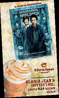 Gloria Jean's Coffees; dün vizyona giren 'Sherlock Holmes' filmini izleyenlere, tüm içecek ve yiyeceklerde yüzde 20 indirim uygulaması başlattı. Warner Bros ile işbirliği yapan Gloria Jean's Coffees, film bileti ile gelecek müşterilerini bu avantajdan yararlandıracak. Kampanya, 'Sherlock Holmes'un vizyonda kaldığı süre içinde devam edecek. Kahve severler, bilet tarihlerinden itibaren 15 gün içinde indirim alabilecek.