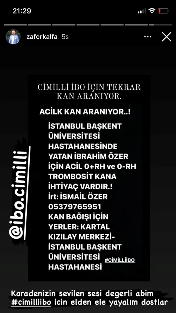 2020 yılının Eylül ayında yakalandığı koronavirüs nedeniyle hastaneye kaldırılan ve durumunun kötüleşmesinin ardından yoğun bakıma alınan Karadeniz müziğinin sevilen ismi İbrahim Özer'in iyileşme göstermesi sonrasında tedavisine evde devam edildi. 33 yaşındaki Cimilli İbo'dan bir kez daha kötü haber geldi.