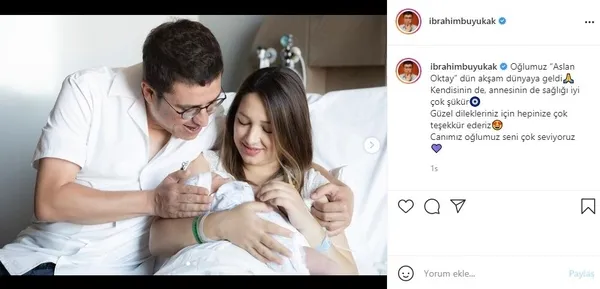 Büyükak, "Oğlumuz 'Aslan Oktay' dün akşam dünyaya geldi. Kendisinin de annesinin de sağlığı iyi çok şükür. Güzel dilekleriniz için hepinize çok teşekkür ederiz. Canımız oğlumuz seni çok seviyoruz." ifadelerini kullandı.