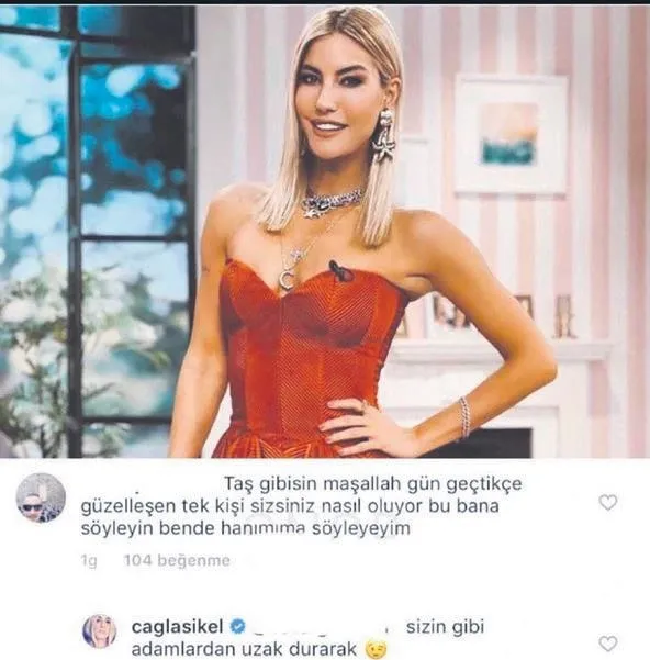 Bir erkek takipçisi, Çağla Şıkel'in fotoğrafının altına şu yorumu yazdı: 'Taş gibisiniz maşallah! Gün geçtikçe güzelleşen tek kişi sizsiniz. Nasıl oluyor bu? Bana söyleyin ben de hanımıma söyleyeyim!' Bu yoruma çok sinirlenen ünlü manken, "Sizin gibi adamlardan uzak durarak!" yanıtını verdi.