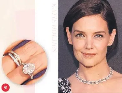 TOM Cruise'un 2005 yılında Eyfel Kulesi'nin tepesinde evlilik teklifi ettiği Katie Holmes, en pahalı yüzüğe sahip olan ünlülerden. Holmes'ın oval şekilli 1.5 milyon dolar değerindeki 5 karat yüzüğü, 'pembe altın' ya da 'pembe taş' denilen bir mücevherden yapılmış!