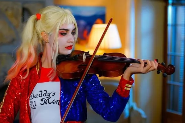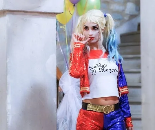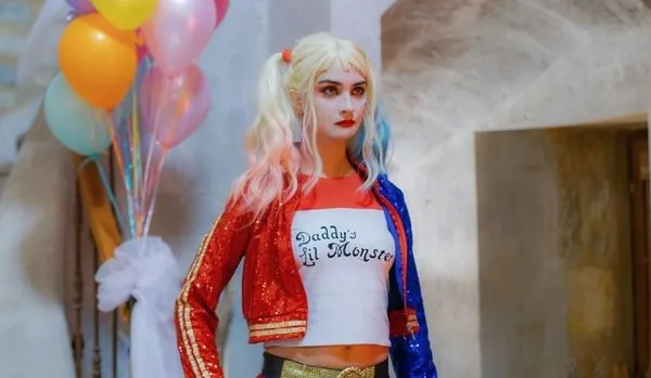 Oyuncu, üç saat süren özel makyaj ve kostümle bir anda Batman'in düşmanı Joker'in kız arkadaşı Harley Quinn'e benzetildi.